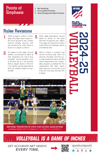 The NFHS is providing FREE Rules Revisions Posters for the new high school volleyball season. If you are a coach, administrator, or state association representative, click the link below to download the PDF file.