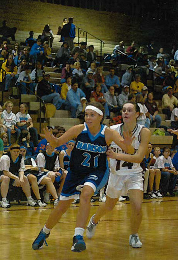 Bridge (No. 21 in blue) in Hanson’s game with Tri-Valley in the 2003 Hanson Classic. At the time, both teams were ranked at or near the top of their respective enrollment classes.