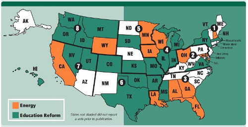 The map below summarizes the state-by-state balloting on topic areas.