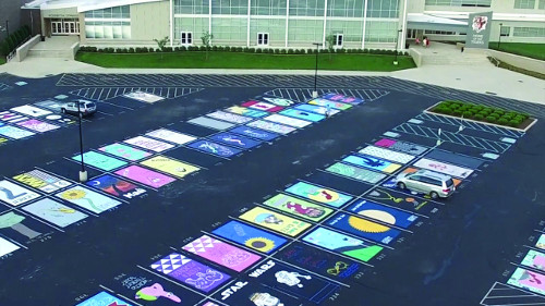 Once students purchase their parking spots, they can paint them with a design that has been approved by the school. Students’ parking spots are most-often decorated with their names and creative designs that show their personalities. This makes for a colorful parking lot while providing extra money for student activities.