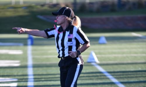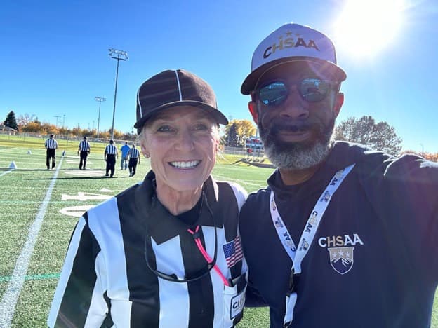 Standing on the field was Becky Petre, a longtime math teacher at Highlands Ranch High School (Colorado), and my now-adult son’s favorite teacher. For more than 20 years, Petre has shaped students not just through equations and exams, but through her steady presence, high expectations, and genuine care for young people. Seeing her step into the role of a game official felt like a natural extension of who she has always been.