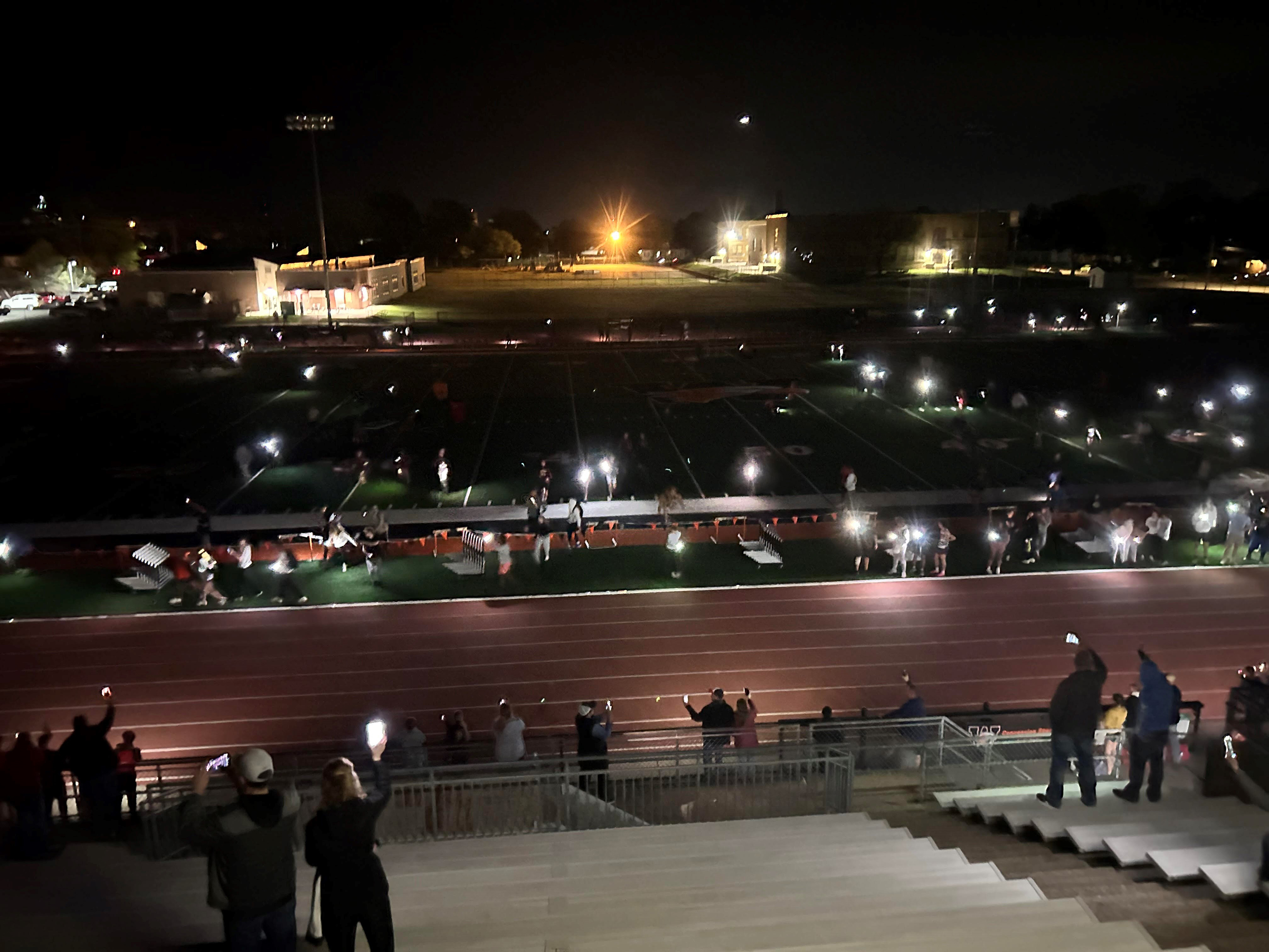 The runners never stopped. They kept going. Almost immediately, everyone on the infield and the outer part of the track turned on their cell phone lights. Before I could fix the problem, the athletes solved it for us.