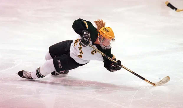 Wendell played boys hockey all through her youth and into her first two high school seasons. Early in her sophomore year, her thumb was severed by a skate and surgery was required to re-attach it. While recovering, she had time to watch the girls hockey scene. It was an exciting one, and she contemplated her future in that arena. Following a talk with her parents, she realized she wanted to play high school girls hockey, too. In a sport budding with future superstars, Wendell zoomed to a legendary, iconic level.