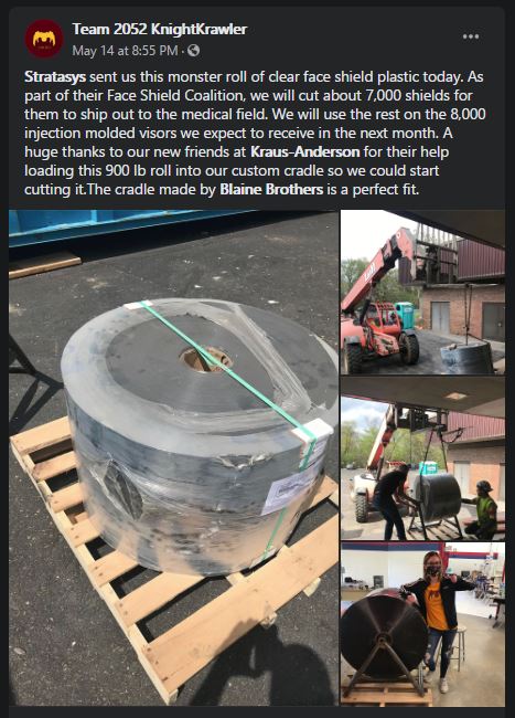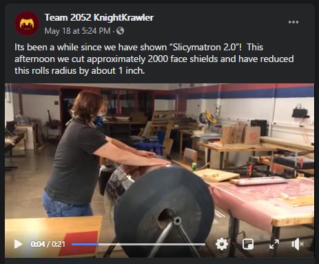 As of May 26, the hard work of KnightKrawler accounted for nearly 26,000 face shields. Of those, 11,800 were shields without visors, which were components desired by many other groups.