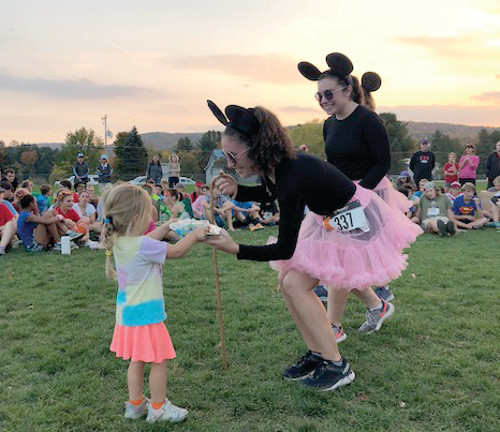 The timing of the race is intentional. It takes place annually during the two-week period leading up to league, divisional and state championship races. The prizes, which consist of enormous plates of baked goods, are awarded to not only the fastest teams, but also for best costumes in multiple middle and high school divisions.