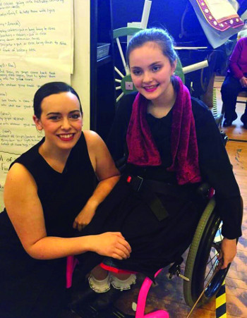 When Egan started in theatre, she was assisted by a school-provided aide. However, a few years ago, she made the decision to go to fellow members of The Bay View Players to ask for only the specific help that she needed. In addition, 2010 St. Mary Academy-Bay View graduate Michaela Ferreira stepped in to assist by attending all of Egan’s rehearsals and by helping accommodate her needs and stage transitions.