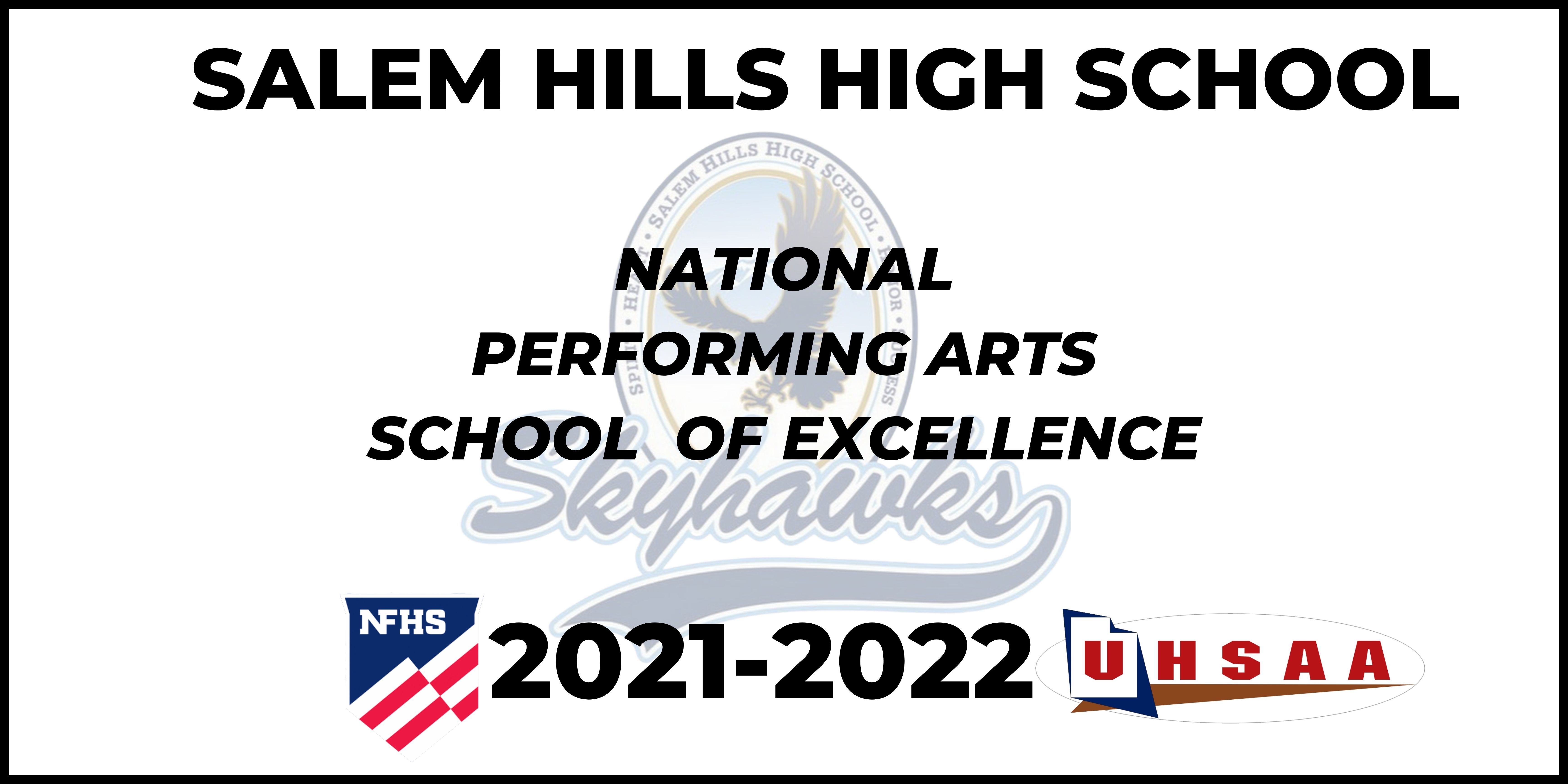 "The UHSAA is thrilled to have the NFHS recognize Salem Hills High School, and the Association also congratulates Salem Hills on their continued success in the performing arts," said UHSAA Executive Director Rob Cuff. "Salem Hills is a tremendous example of the continued focus UHSAA member schools have on creating a diverse, education-based activities experience for students. Congratulations to the Salem Hills community on this well-deserved national honor."