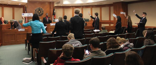 Students are empowered through this process to examine the world around them and advocate for change. Melissa Witt, president of the Texas Speech Communication Association, describes Student Congress as an opportunity for students to debate in a real-world context because “it challenges them to be well-researched on a variety of topics as well as to consider the impact various legislative solutions would have on the U.S. economy, relations with other countries and the everyday lives of American citizens. It gives them insight into the responsibility of holding a public office.”