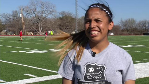 In Texas, Esmie Gonzalez is racing to new goal-scoring heights for girls soccer. Gonzalez, of Forth Worth South Hills High School, set a new record for goals in a career with a nine-goal outburst in a game last week. That game put Gonzalez's career total at 294 goals, eclipsing the previous record of 286 of Erin Martin from 1992.