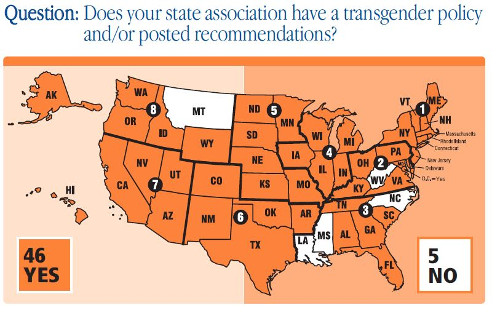 School and athletics administrators should research and familiarize themselves with the requirements included in any applicable state statute, state association policy or board of education regulations and develop district-wide and sports program-specific policies addressing all of the transgender issues discussed above.