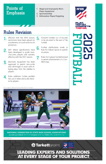 The NFHS is providing FREE Rules Revisions Posters for the new high school football season. If you are a coach, administrator, or state association representative, click the link below to download the PDF file.