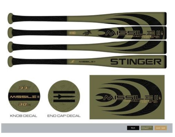 The National Collegiate Athletic Association (NCAA) has advised the NFHS that on the basis of the performance testing by Washington State University Sports Science Laboratory, the BBCOR decertification process has been implemented for the Matte Military Green bat (see image below) with Black and Gold highlights (color) 33” model Stinger Bat Company Aluminum Missile II bat. The model number is MISL2233. The bat will be removed from the BBCOR Approved Bat list that is housed on the Washington State University Sports Science Laboratory website.