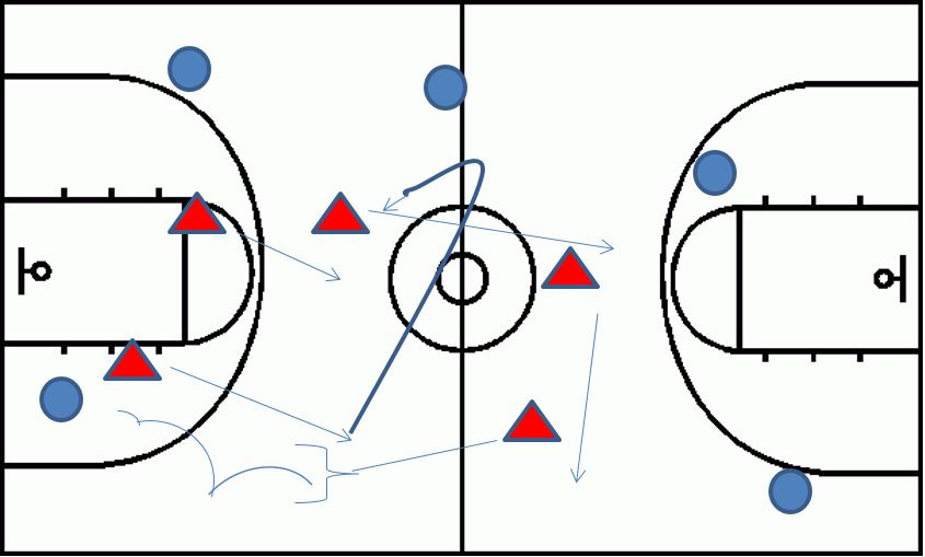 · If no steal created, immediately drop to predetermined half-court defense.