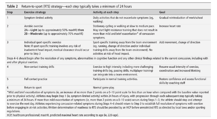 Putukian M, Purcell L, Schneider K, et al. Clinical recovery from concussion: return to school and sport: a systematic review and meta- analysis. Br J Sports Med 2023.