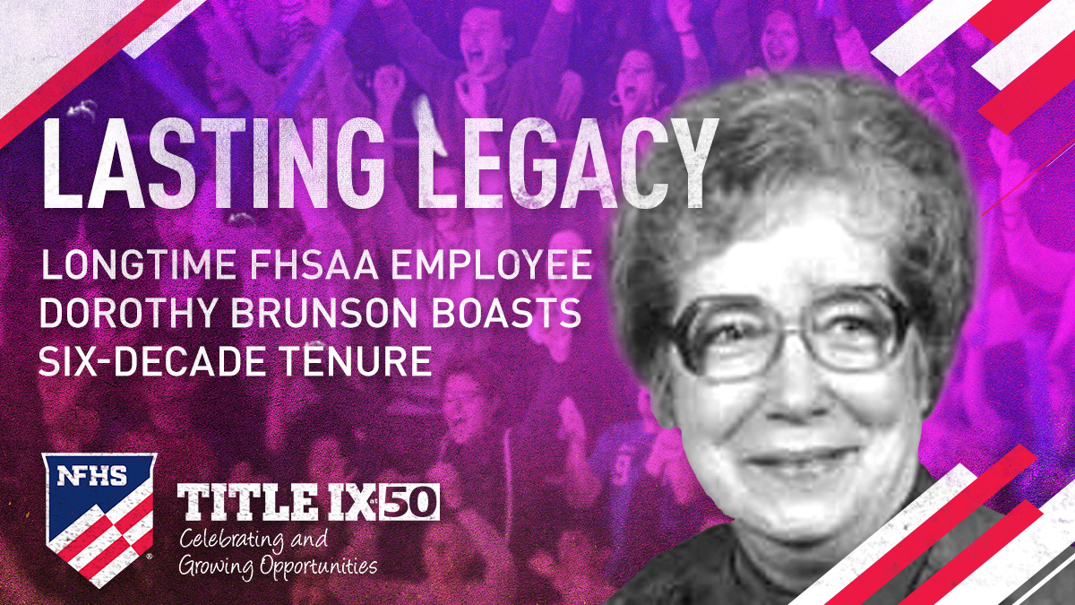 Hired in August 1943, Dorothy Brunson is the longest-tenured employee of any state association. The Florida High School Athletic Association (FHSAA) hired her as a secretary months after graduating high school and remained her employer for 67 years until her 2010 retirement. #TitleIXat50